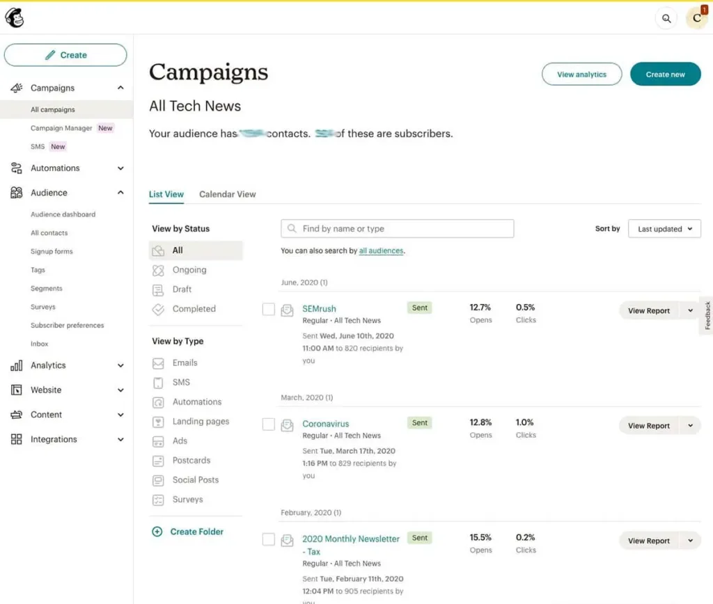 • Mailchimp: email marketing
