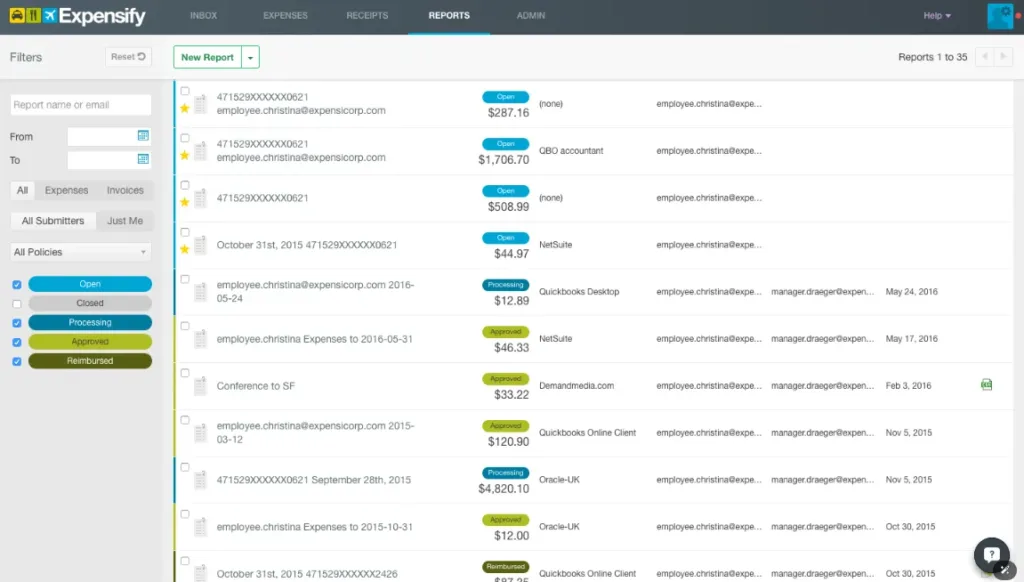 Expensify es una aplicación que se centra hacer más sencilla la gestión y el seguimiento de los gastos de negocio. Dentro de sus funciones principales se encuentran el escaneo de recibos, creación de informes y realización de reembolsos.