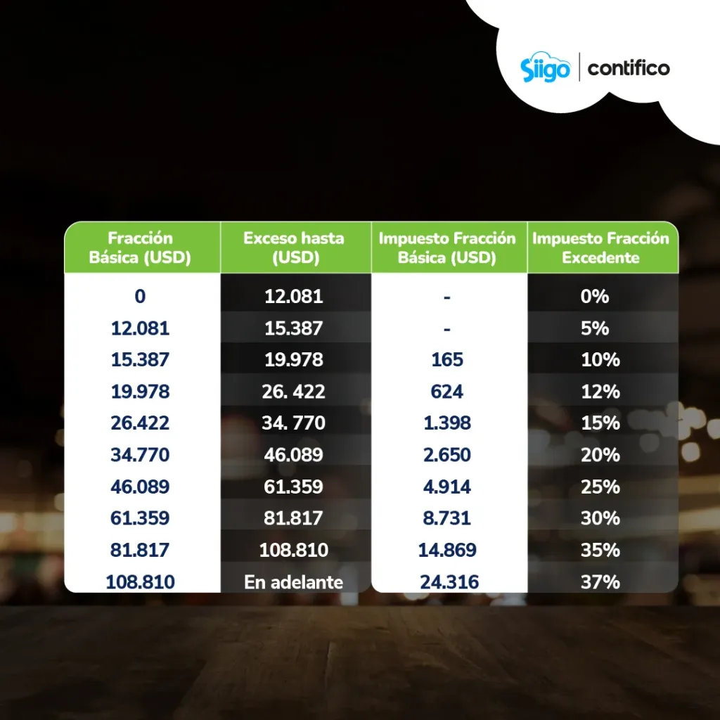 En este paso, debes tener presente la tabla de Impuesto a la Renta, el cual es actualizado y publicado por el SRI cada año. A continuación, te compartimos la tabla correspondiente para el 2025: