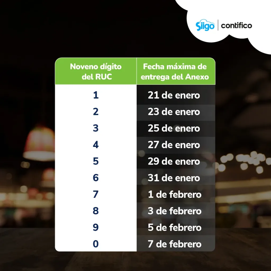El SRI habilitará el sistema de recepción para el Anexo desde el 16 de enero de 2025. La presentación del Anexo se rige por plazos, los cuales dependen del noveno dígito del RUC del empleador.